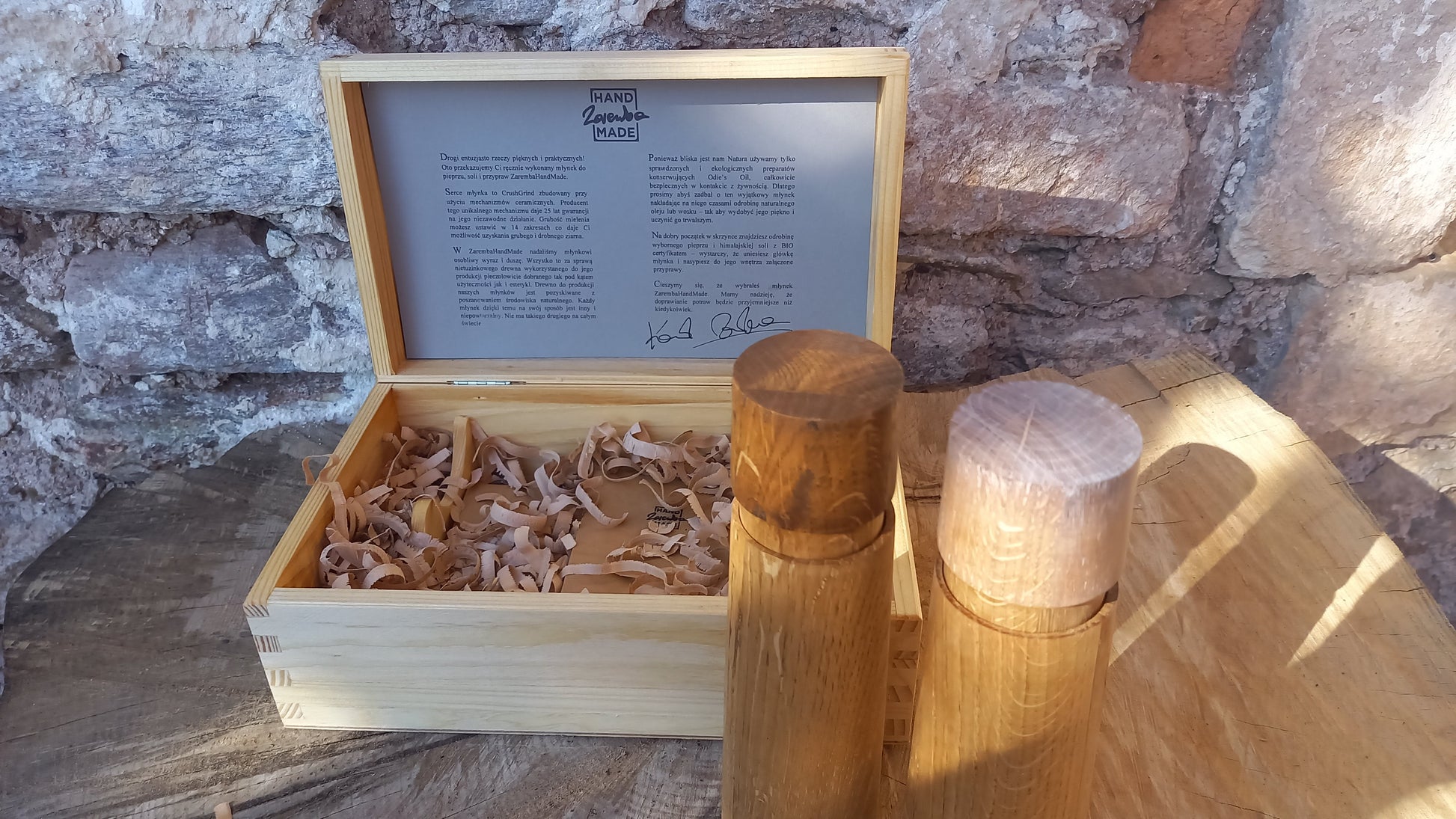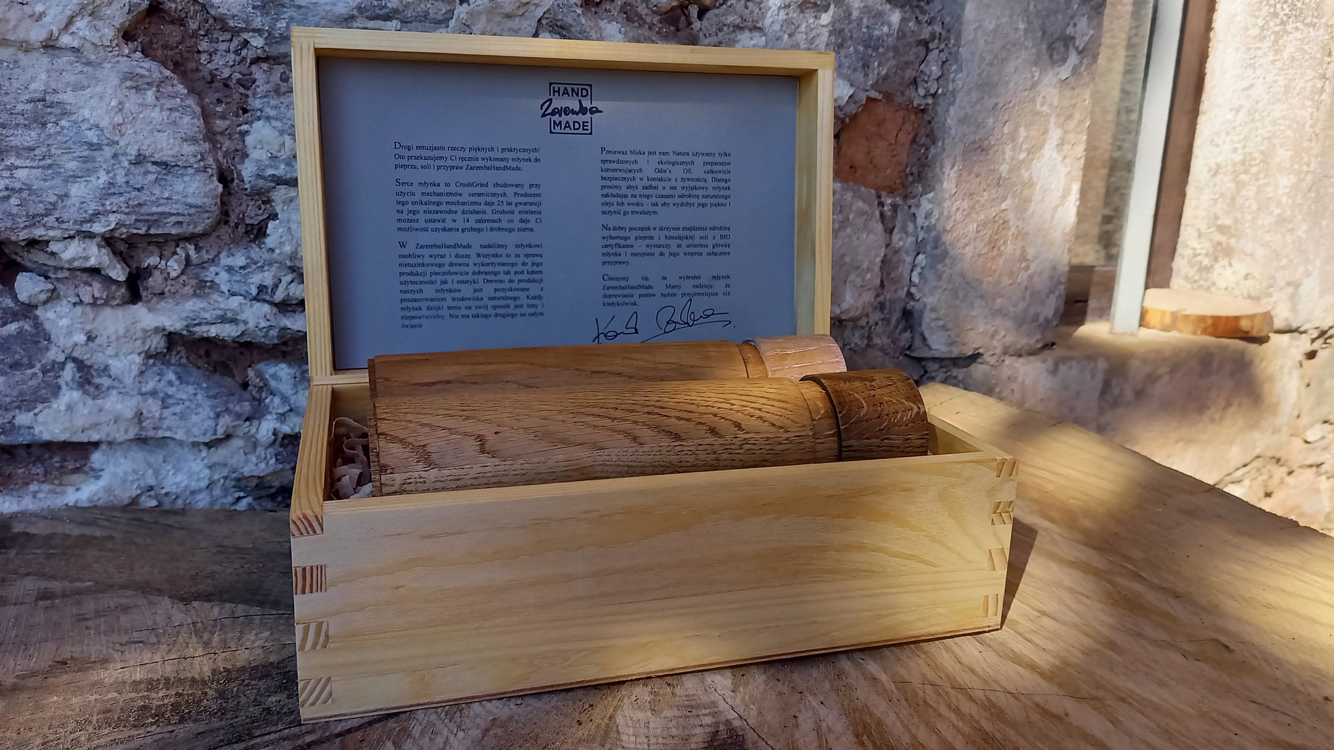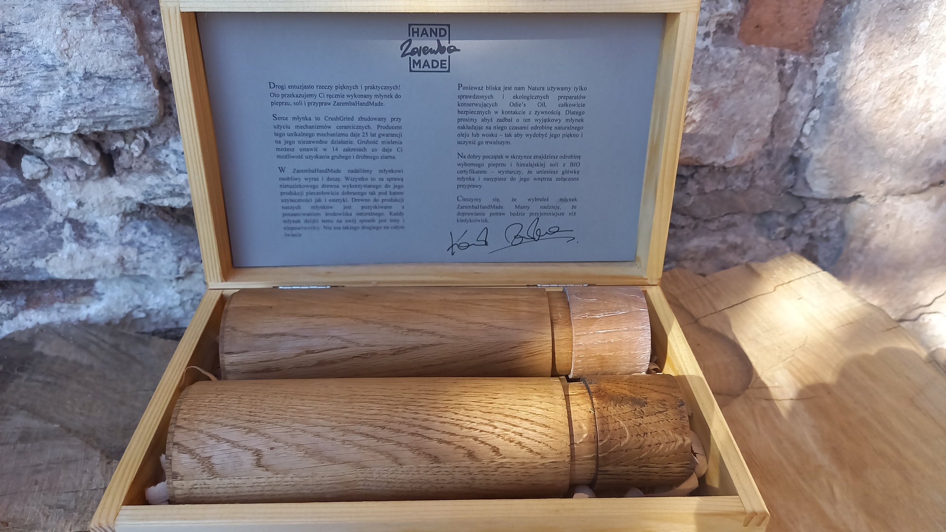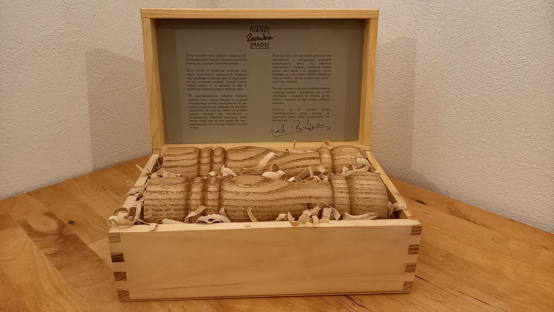 Możemy przygotować młynki jako produkt upominkowy w estetycznej drewnianej skrzynce z dedykacją.